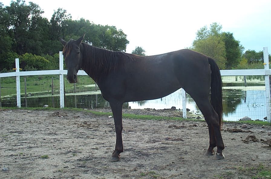 4 yr old tennessee walker mare. No papers. 16 hands. Black. Does the running walk easily also will trot and canter while being ridden. Has had ground work. Ground drives, lounges. Knows voice commands of walk, run, trot, canter, whoa, easy. Comes down in gait when you say easy. Starting to neck rien. Does turn on hind quarters. Backs. Starting to side pass. Smooth ride. Great horse to trail ride on but also show quality. price will increase as more time and training is put on her.
